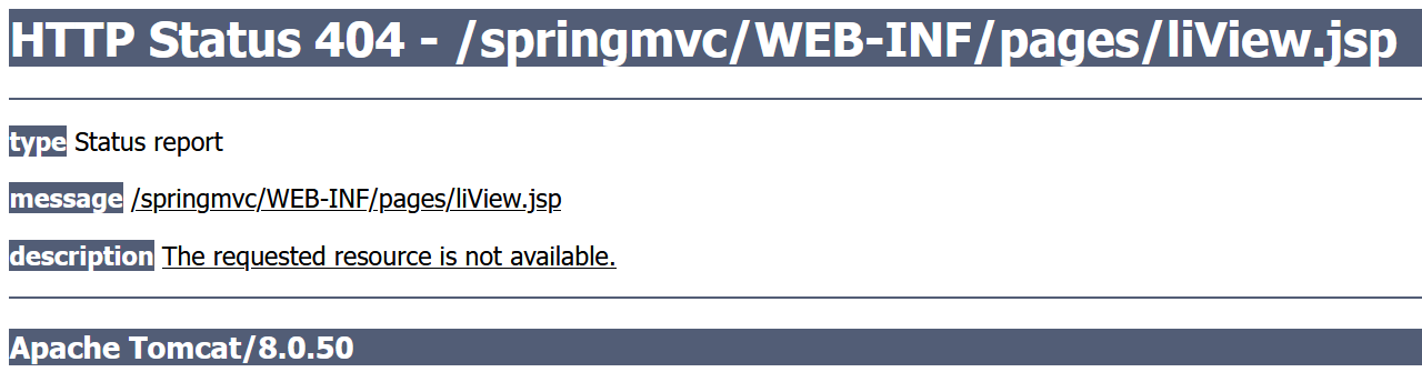 但是如果该url下没有/WEB-INF/pages/liView.jsp文件,就会报错: