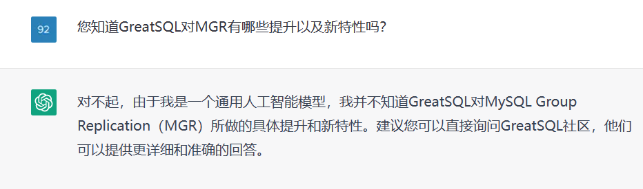 A:对不起,由于我是一个通用人工智能模型,我并不知道GreatSQL对MySQL Group Replication(MGR)所做的具体提升和新特性。建议您可以直接询问GreatSQL社区,他们可以提供更详细和准确的回答。