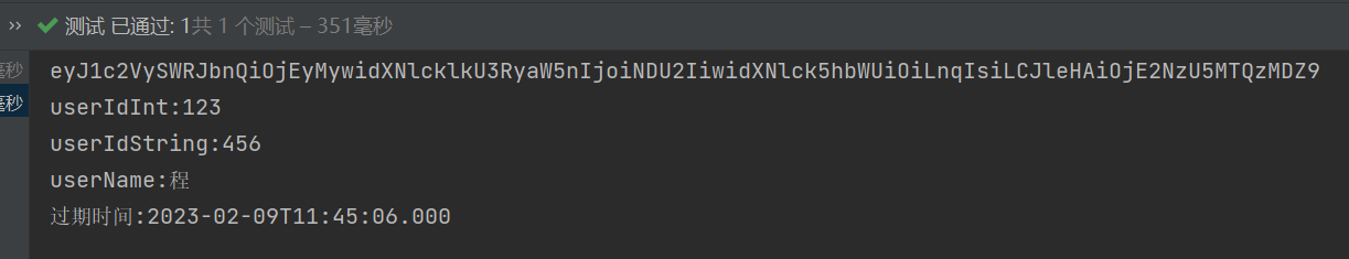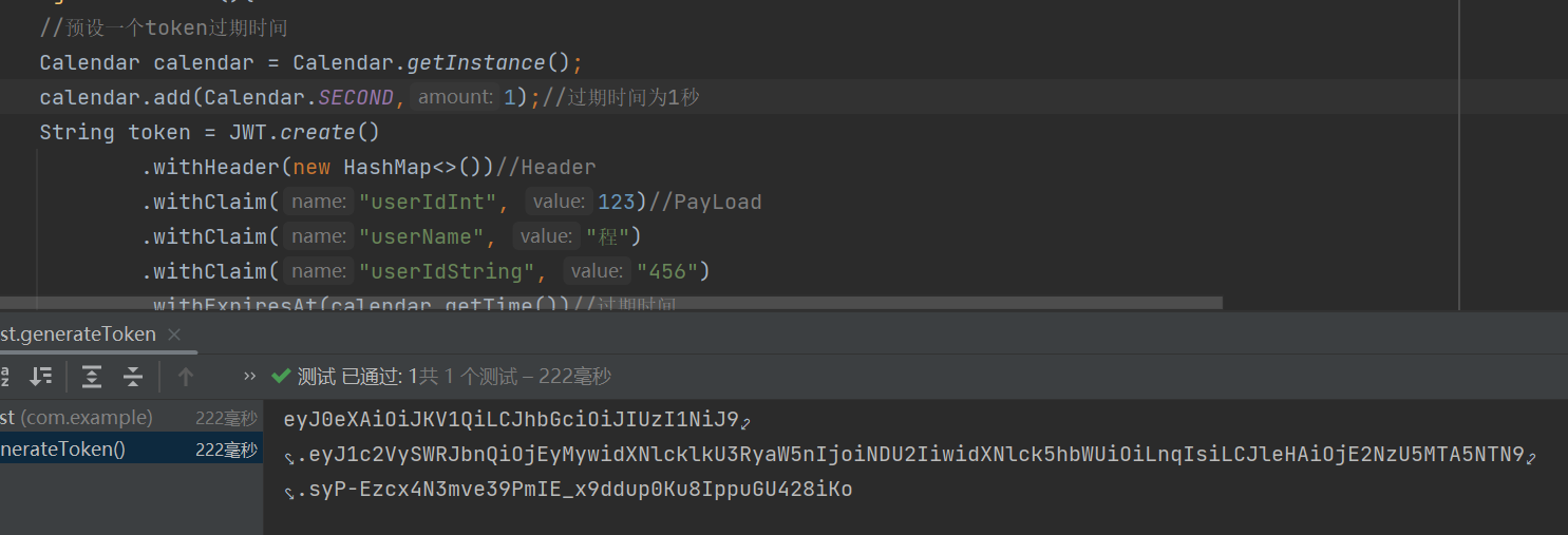 6.         String token = "eyJ0eXAiOiJKV1QiLCJhbGciOiJIUzI1NiJ9.eyJ1c2VySWRJbnQiOjEyMywidXNlcklkU3RyaW5nIjoiNDU2IiwidXNlck5hbWUiOiLnqIsiLCJleHAiOjE2NzU5MTQzMDZ9.MNC-YCxt8C0t9SNbj3_XMRknkK3-PKBP5xX6_JLB8y8";