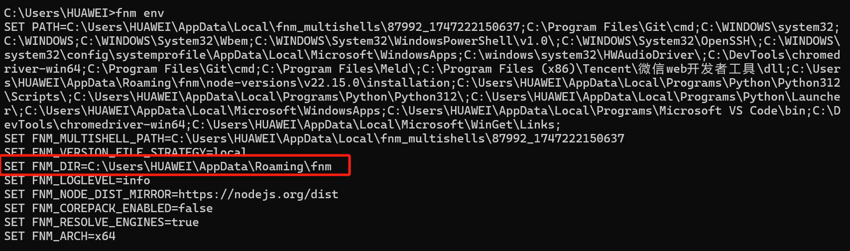 找到 node 和 npm 下令在 C:\Users\HUAWEI\AppData\Roaming\fnm\node-versions\v22.15.0\installation 目录下,将此目录加到情况变量 path 中,在 cmd 下实行: