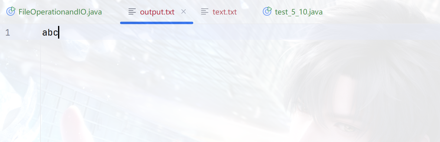 代码运行结束之后,创建了一个新文件“output”文件,并写入了“abc”三个字符。