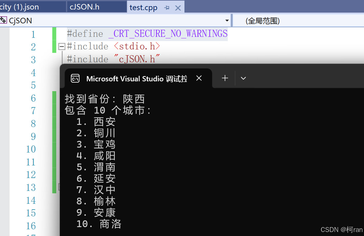 由于cJSON.h中并没有定义对文件的利用,所以通过使用标准 C 库函数 fopen、fread 和 fseek 读取 JSON 文件内容,把文件内容读取到字符串中,然后分析字符串,留意使用动态分配内存存储 JSON 数据,并在使用后准确开释,实际利用直接使用 cJSON 库分析 JSON 数据结构,包罗对象、数组的遍历,最后通过使用 strcmp 举行字符串比力,即可定位目标省份。