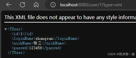 发送请求 GET /projects/spring-boot?format=json,匹配到 @GetMapping("/projects/spring-boot"),根据参数协商,优先返回 json 范例数据【需要开启参数匹配设置】,发送请求 GET /projects/spring-boot?format=xml,优先返回 xml 范例数据