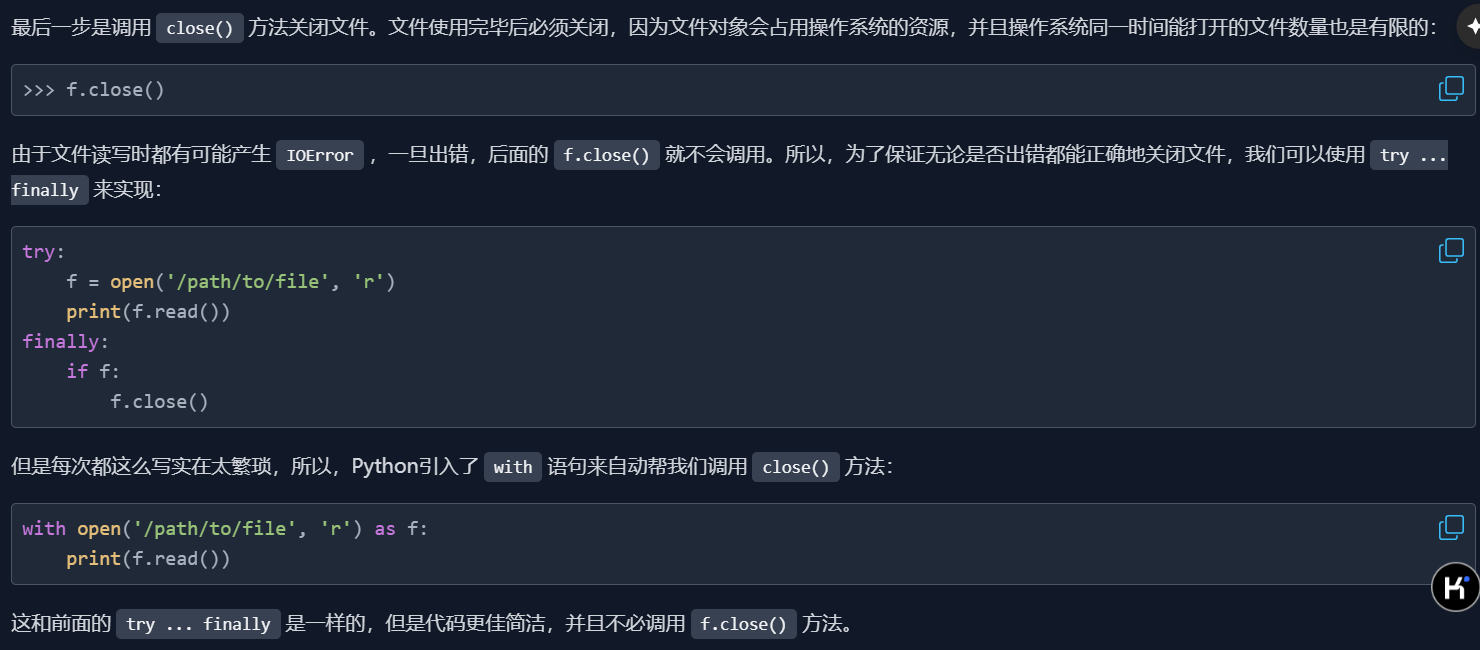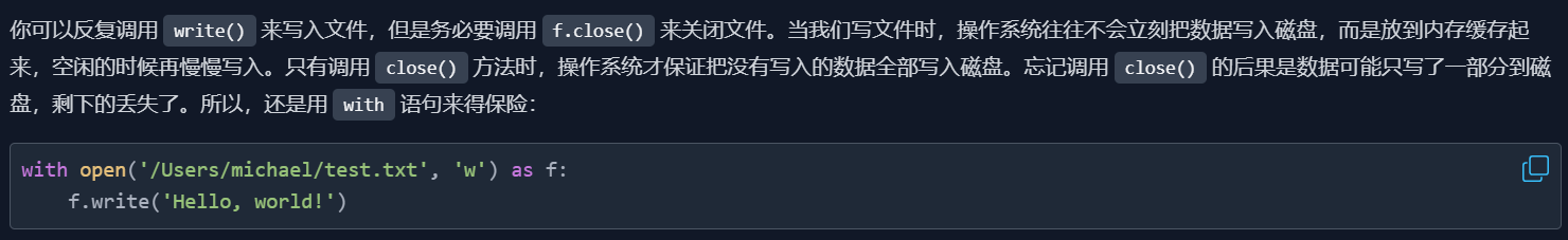 复制代码 参考:https://liaoxuefeng.com/books/python/io/file/index.html