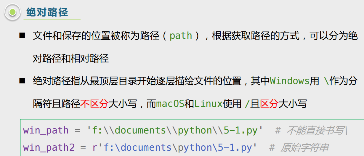 1,谈到文件夹和文件,少不了的就是绝对路径以及相对路径了,