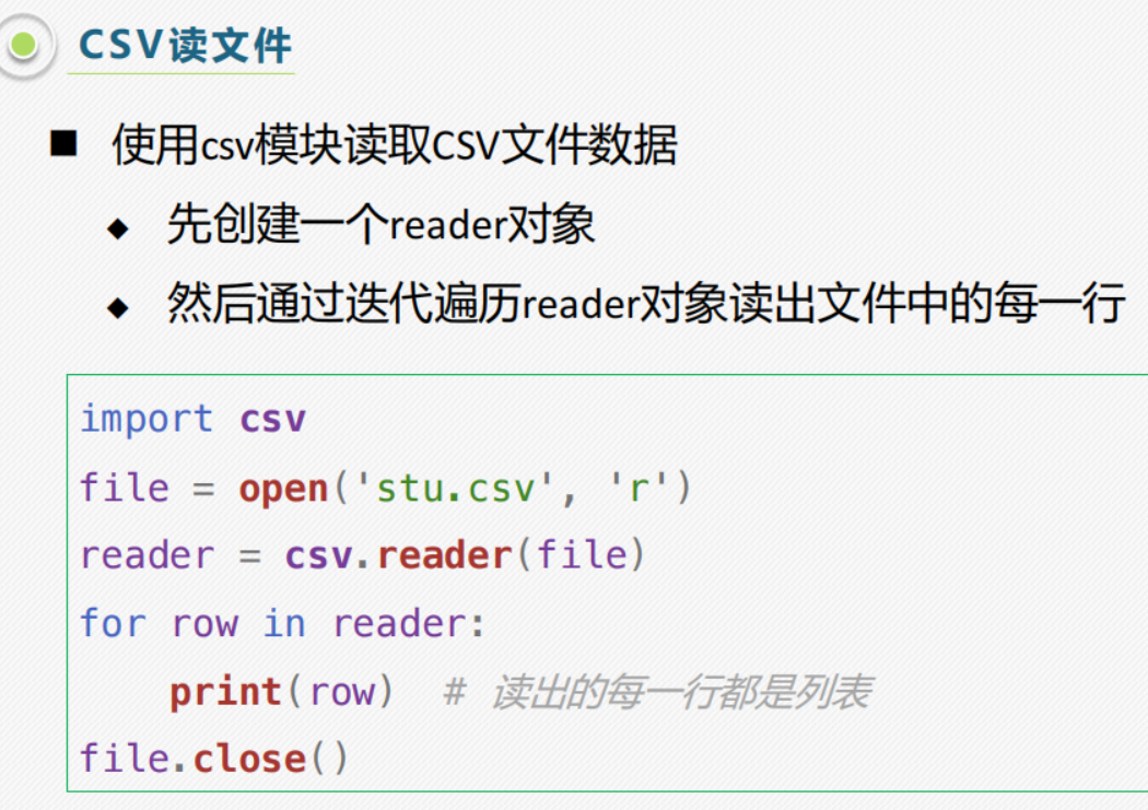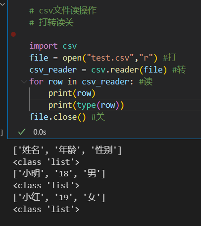 - print(row) # 循环写,对csv中的每一行内容进行操作等