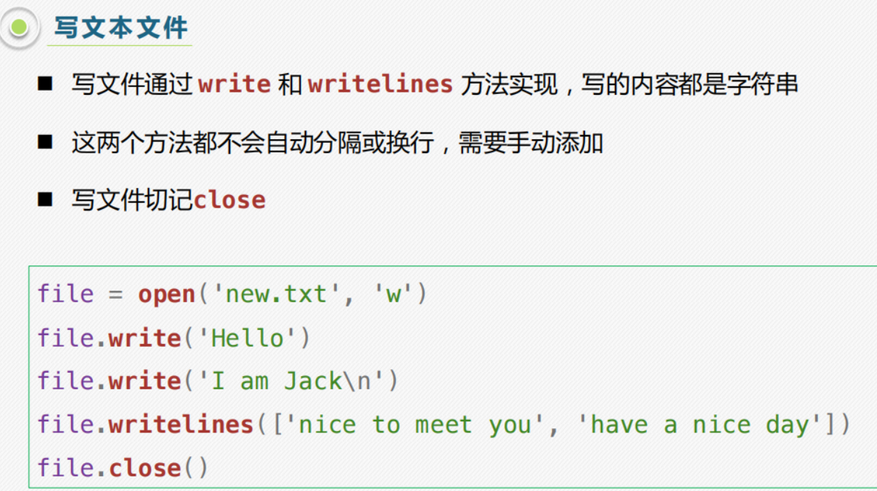 - file.writelines(["str1","str2","strn"]) # 所有的字符串内容