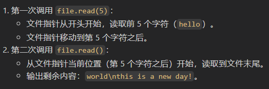 read(n) 会从当前文件指针的位置读取 n 个字符,并将文件指针移动到读取结束的位置。