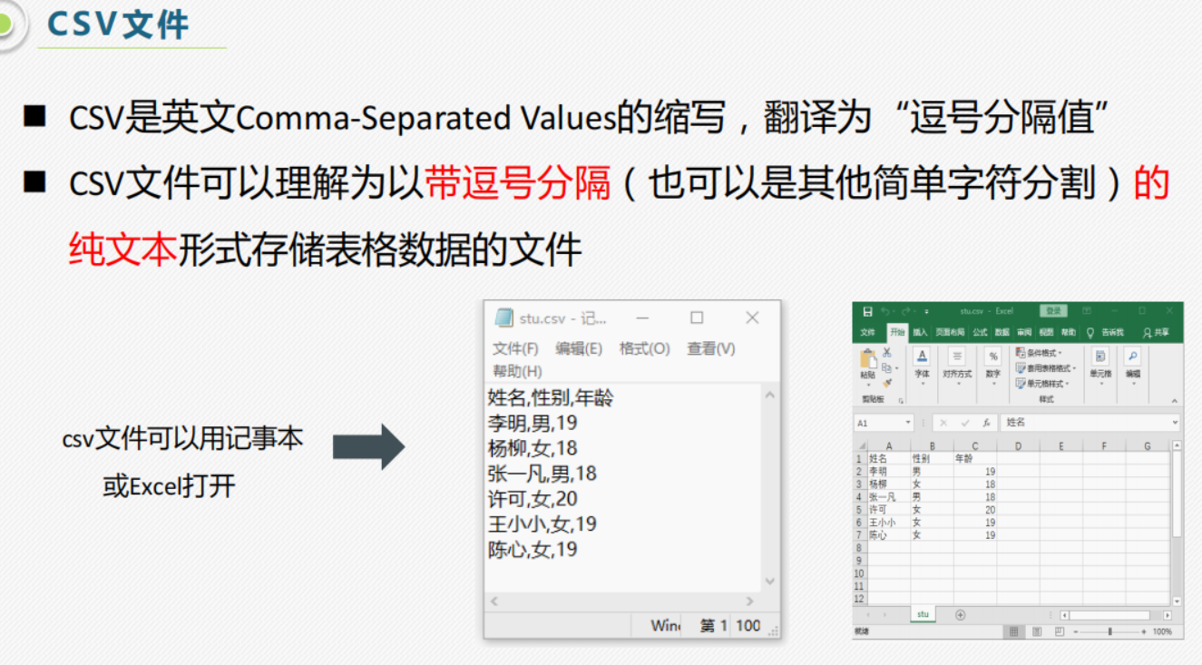 主要是base python中常用的就是csv模块,所以我们用csv文件操作指代任何更一般的分割符操作: