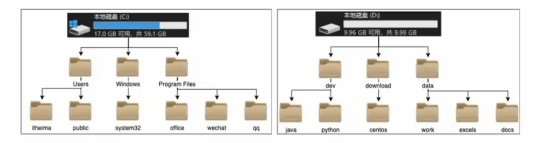 Linux没有盘符这个概念,只有一个根目录 / ,所有文件都在它下面