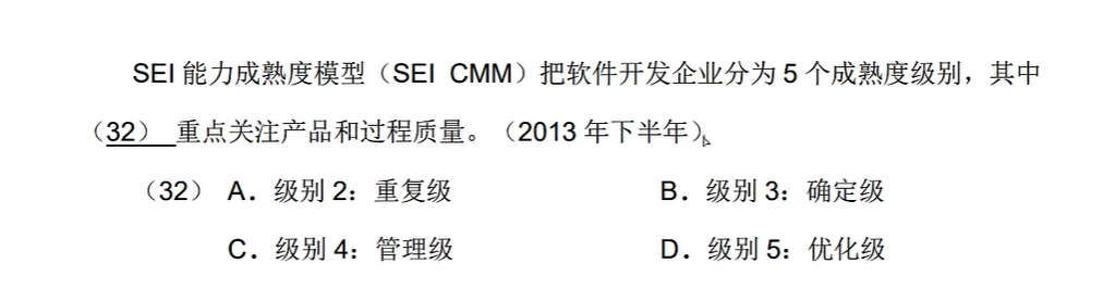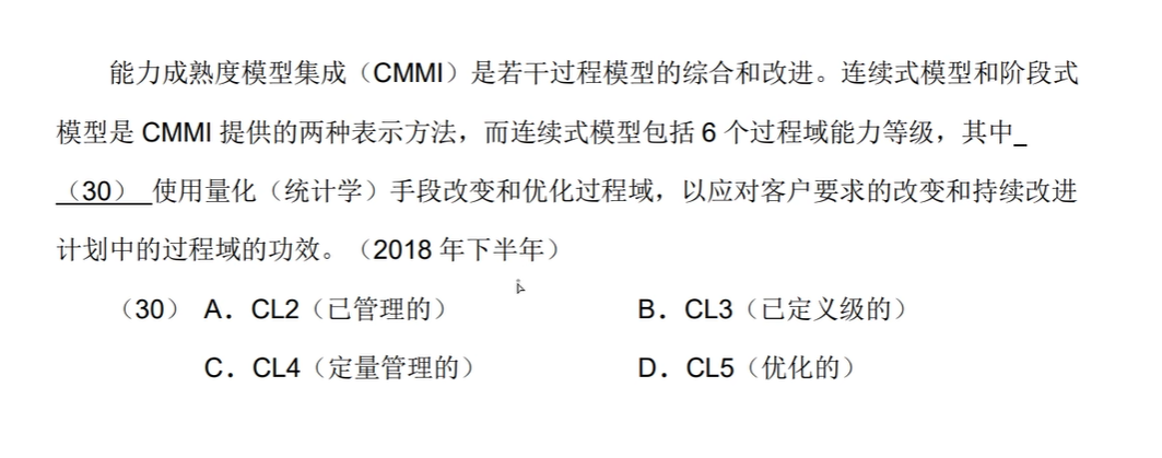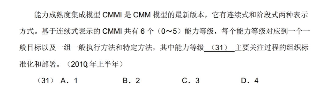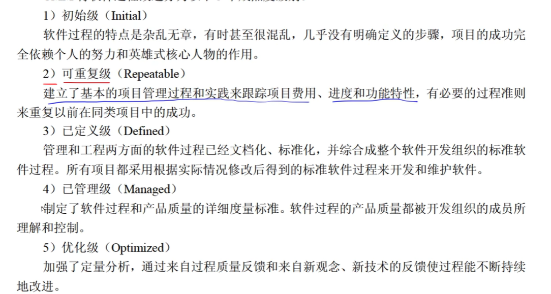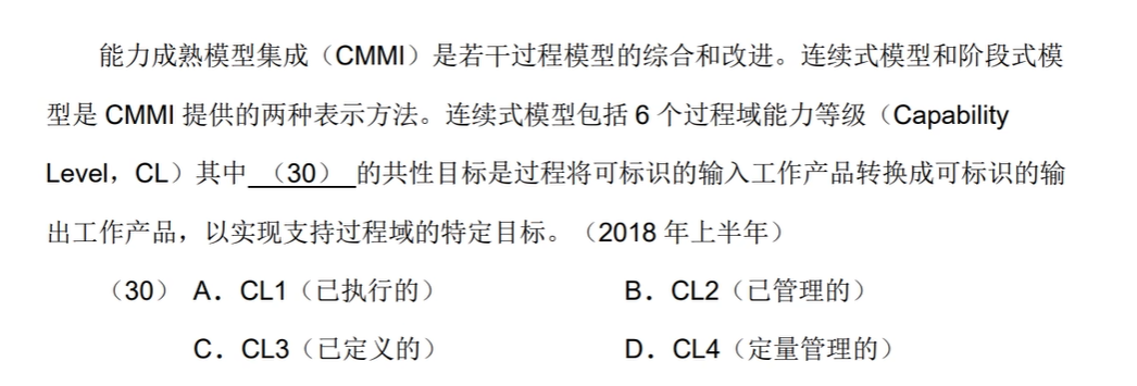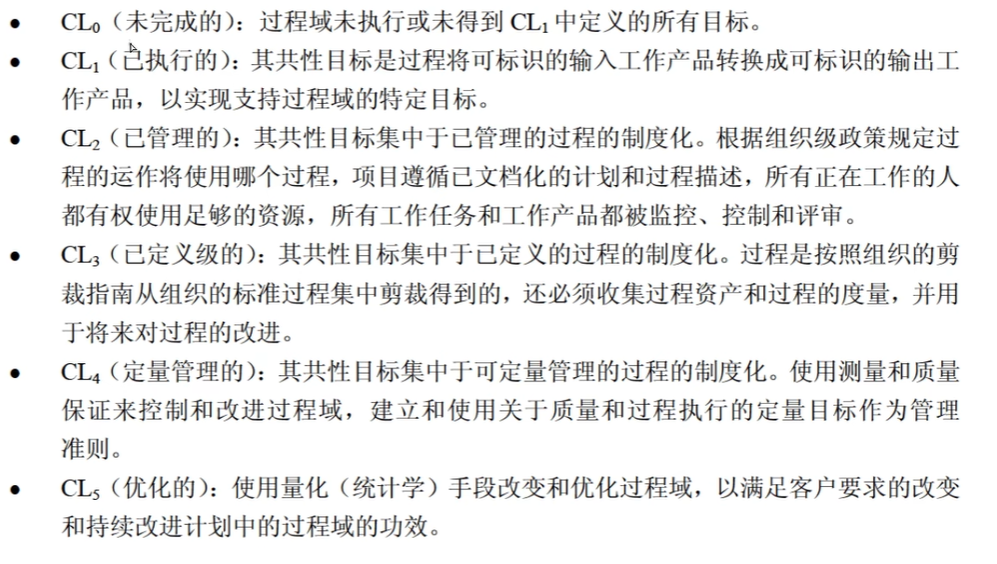0.未完成:未执行未得到目标。1.已执行:输入-输出实现支持2.已管理:过程制度化,项目遵循文档化筹划和过程描述,有权利用富足资源