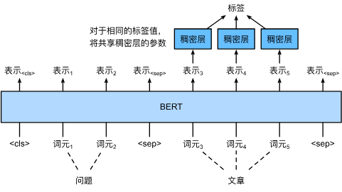 在这里,BERT的两层(encoder和hidden)都只进行微调,而output是要从零开始训练。