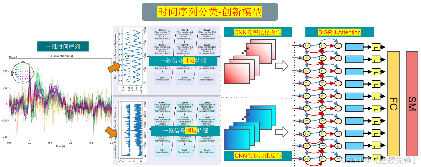 FFT-CNN-BiGRU-Attention模型能够有用提取和使用时间序列数据的时域和频域特征,并通过深度学习的方法进行高效的分类任务。这种组合方法使用了每个模块的上风,使得模型在处理复杂时间序列数据时更加健壮和准确。