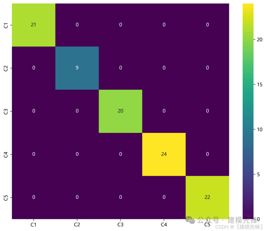 50个epoch,准确率100%,FFT-CNN-BiGRU-Attention网络分类效果显著,模型能够充分提取时间序列数据的多标准特征,收敛速率快,