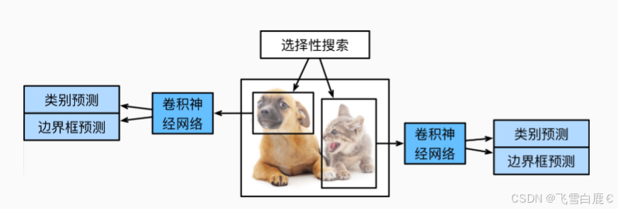 R-CNN 的第一步是从整张图像中挑选出大概包含物体的小地区,称为“候选地区”或“发起地区”(region proposals)。这些地区是由 Selective Search 这类算法选出来的,不是通过滑动窗口或CNN直接得到的。数量大约为2000个。(注:锚框是Faster R-CNN等后续方法的技能,R-CNN并不使用锚框。)R-CNN通过先选出大概含目的的图像地区,对这些地区单独用CNN提取特性,再用这些特性去判定目的种类和更精准的位置。