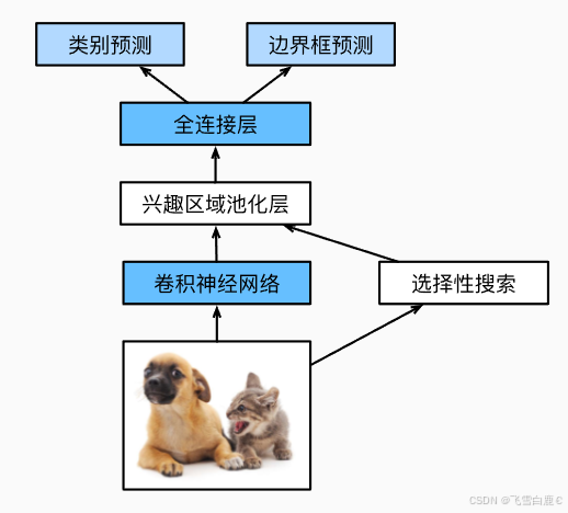 - 对输入图像使用_选择性搜索_(Selective Search)来选取多个高质量的发起地区。这些发起地区通常是在多个尺度下选取的,并具有差别的形状和巨细。每个发起地区都将被标注种别和真实边界框。