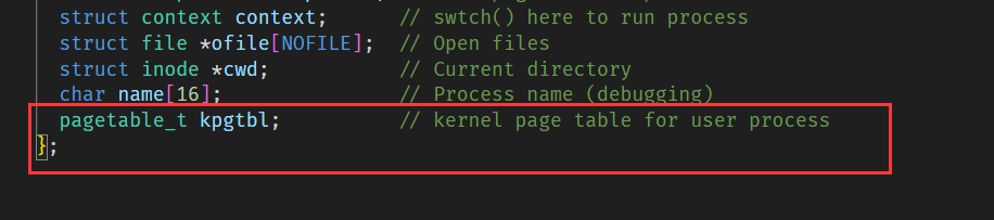 - pagetable_t pagetable; // User page table