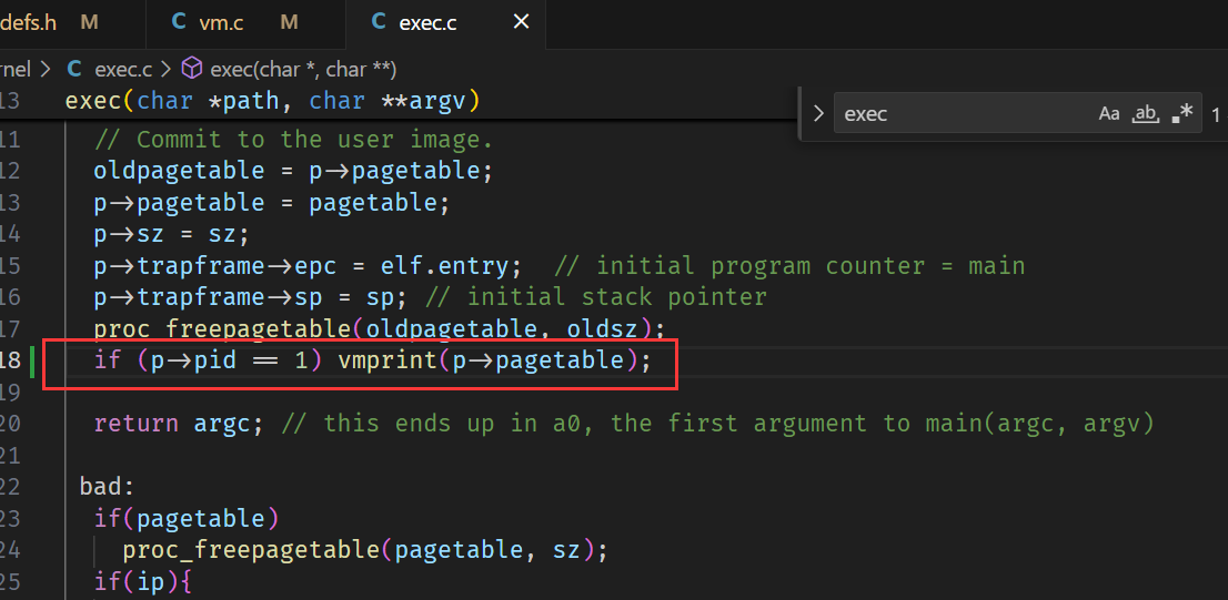 - 调用 mappages() 把 pa 映射到 用户内核页表 即可,这一步执行完以后,satp 中的根页表设置为 用户内核页表,如许也可以访问用户内存了。