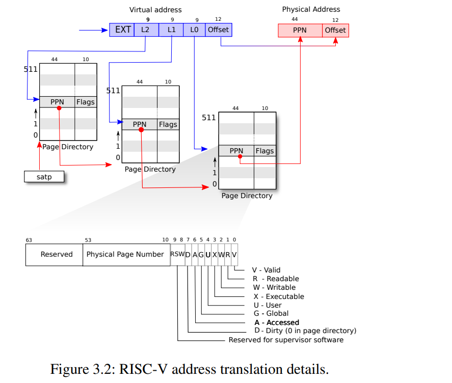 RISC-V Sv39 有 三级页表,每张 页表 都包含 512 个 页表项(PTE),这里介绍下 页表项(PTE) 的物理结构