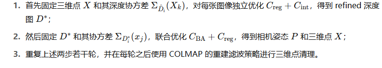 StudioSfM【37】:专为低视差场景设计,利用单目深度进行初始化和正则化,但不进行深度 refinement 或不确定性处理惩罚。