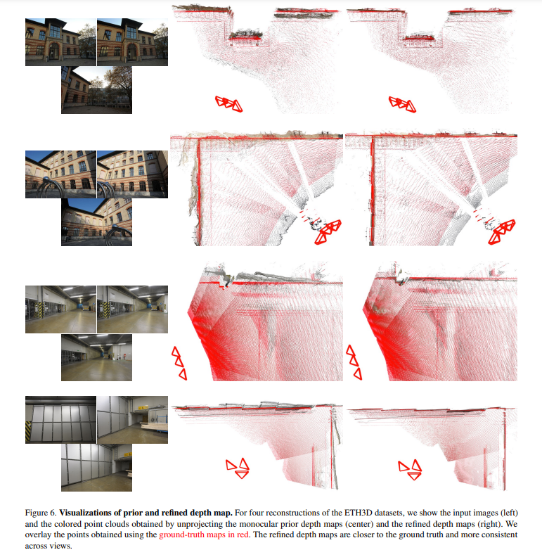。本研究还展示了单目先验能够有效制止由于场景对称性导致的错误匹配,这是SfM中一个恒久存在的题目。本体系初次实现了从少量图像中可靠地重建复杂室底细况。通过公道的先验不确定性传播方法,我们的体系对先验偏差具有鲁棒性,能兼容差别模子天生的先验信息,且险些无需调解,因此能够轻松顺应将来单目深度与法向估计技能的发展。