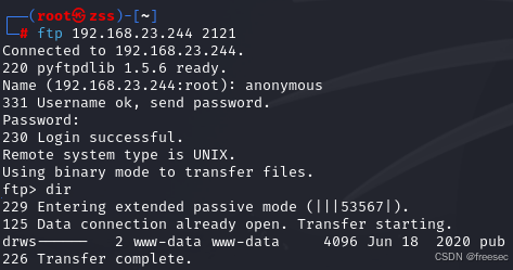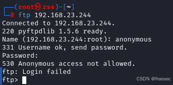 - 匿名登录答应(2121端口):实行登录 ftp://192.168.23.244:2121 用户名为 anonymous,空暗码。