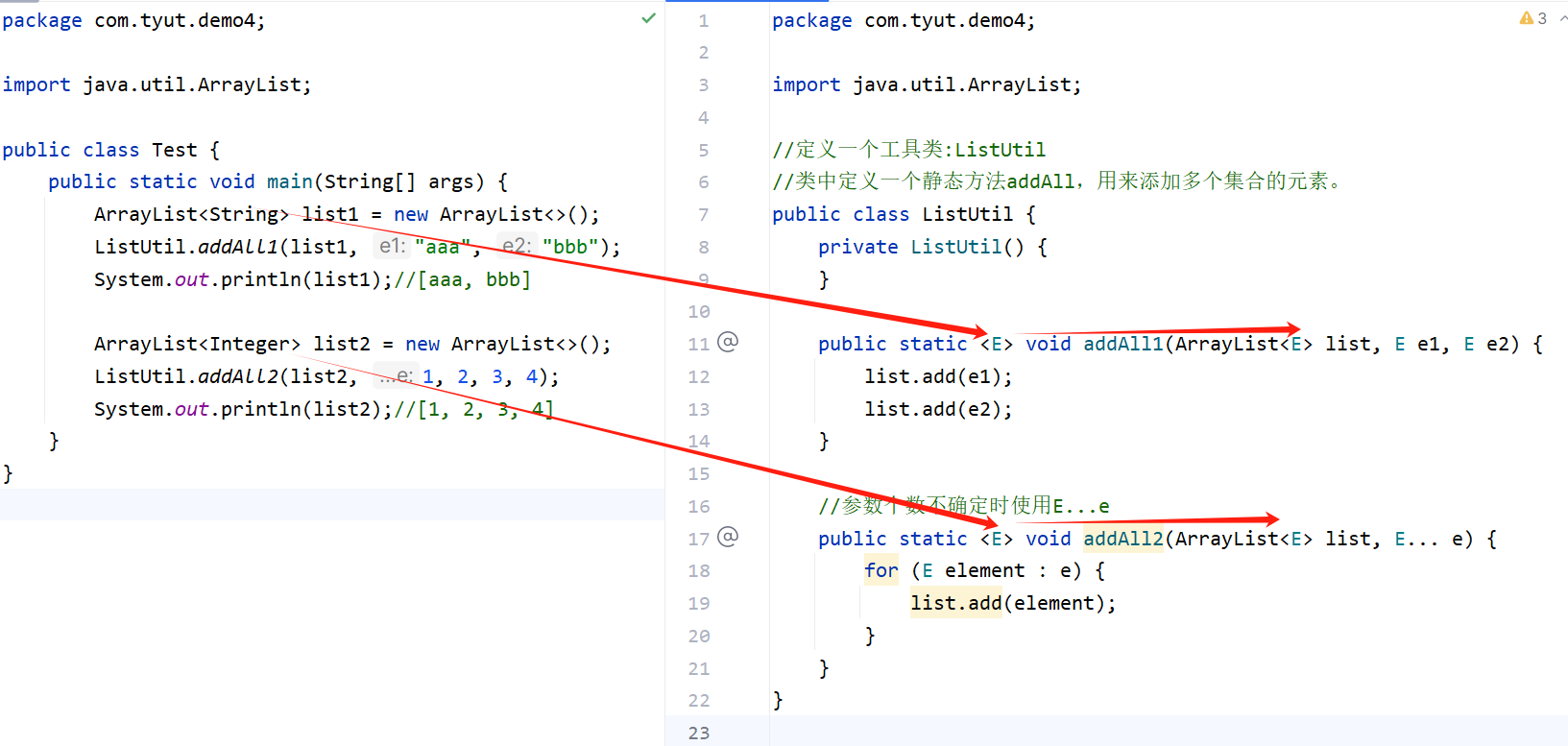 - public static <E> void addAll1(ArrayList<E> list, E e1, E e2) {