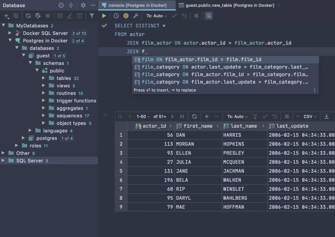 DataGrip 是 JetBrains 发布的多引擎数据库环境,支持 MySQL 和 PostgreSQL,Microsoft SQL Server 和 Oracle,Sybase,DB2,SQLite,还有 HyperSQL,Apache Derby 和 H2。
