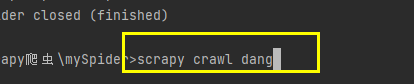 - 末了在cmd中输入:scrapy crawl dang