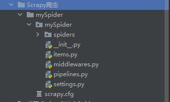 - scrapy startproject mySpider(文件夹名称)