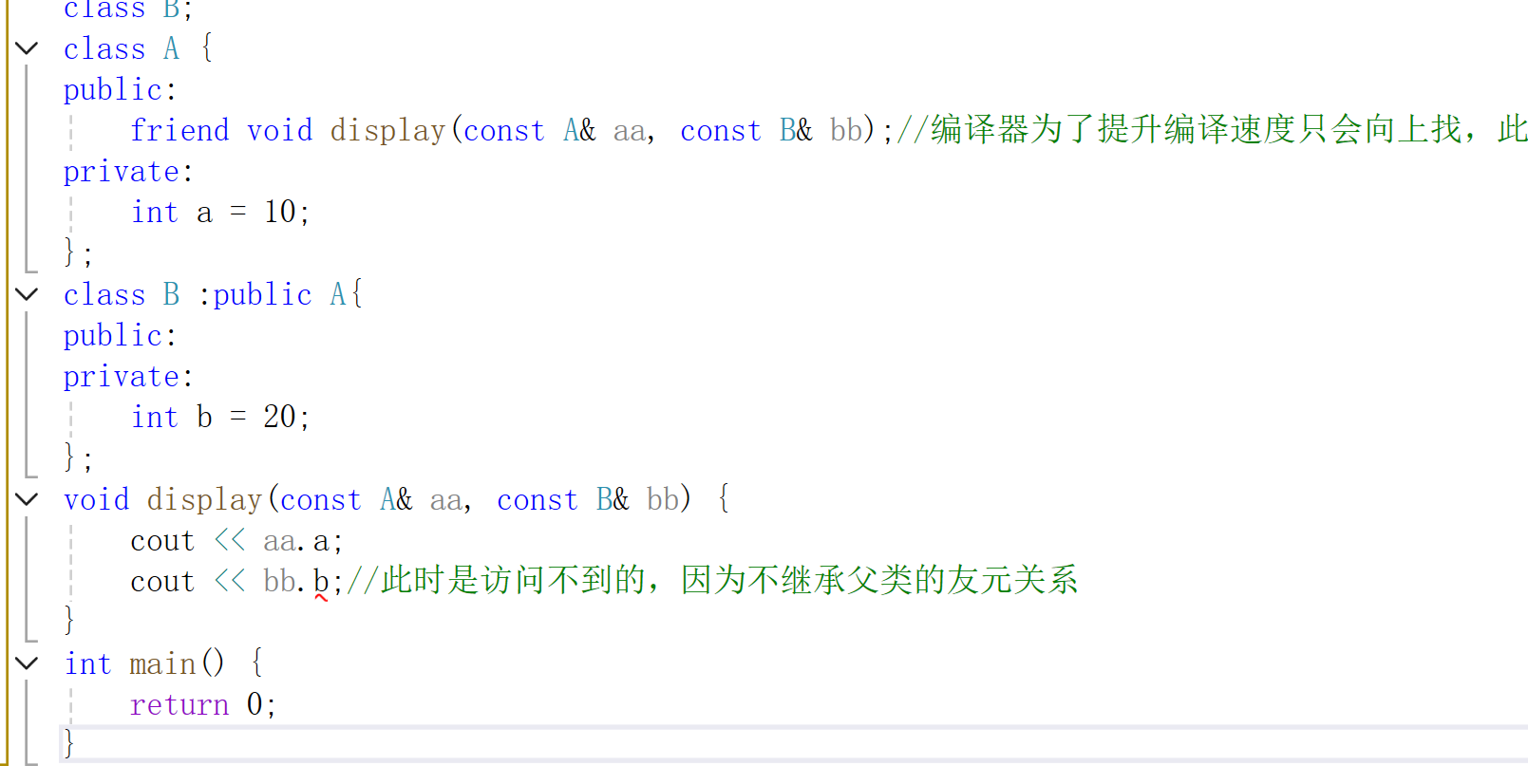 此时我们可以看到,父类的友元函数是父类的,但是子类没有继续过来,不能继续,简朴来说就是你爸爸的朋侪不是你的朋侪。