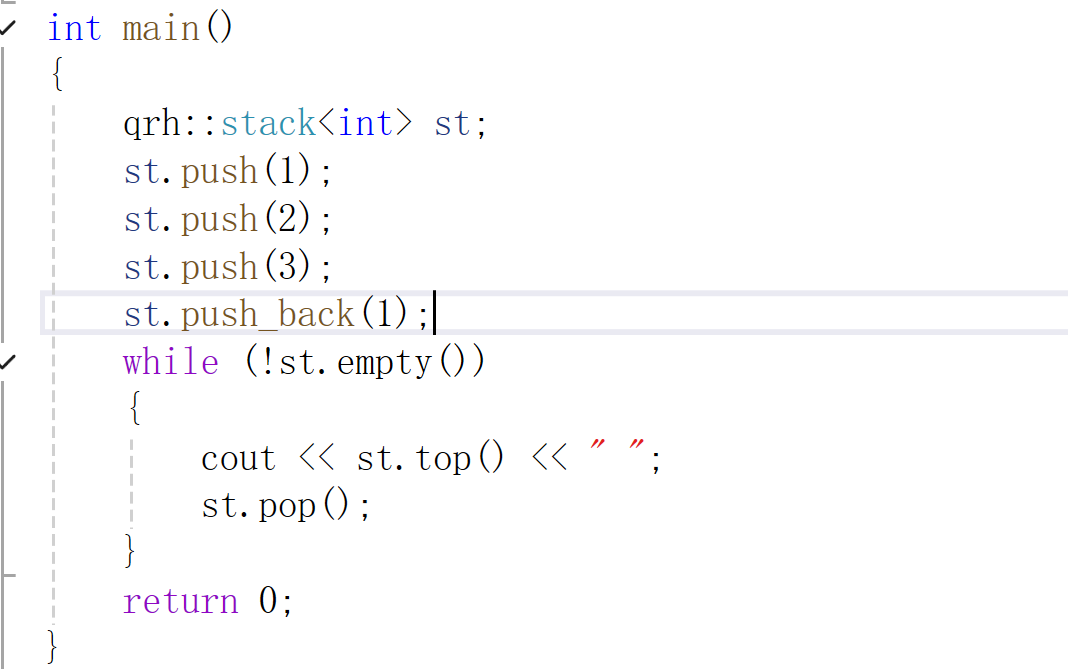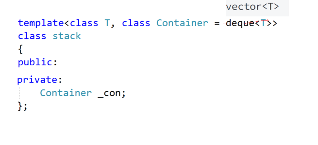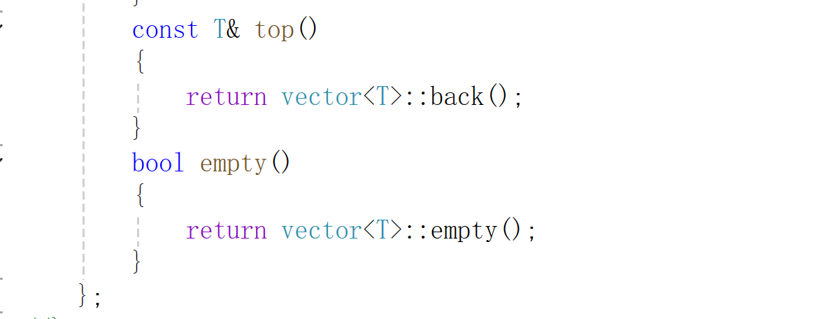 这个就是我们常用的栈,我们在这的实现是通过让它继续vector容器来实现的,此时我们是可以继续vector中的方法的。