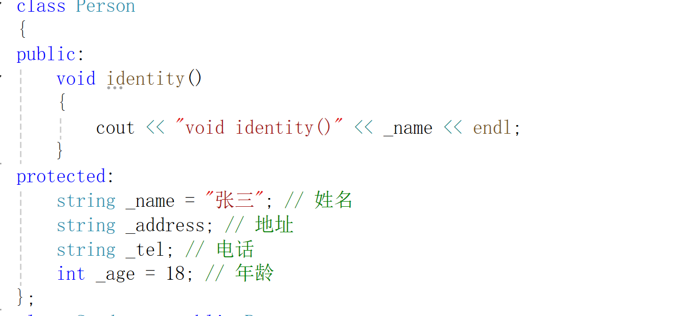 (在派⽣类成员函数中,可以使⽤ 基类::基类成员 显⽰访问)