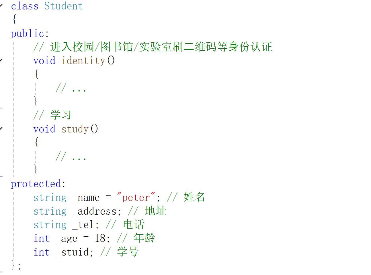 此时这个门生类是通过public继续的,以是父类中各个访问限定符就不会改变,照旧原来的,稳固。