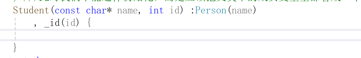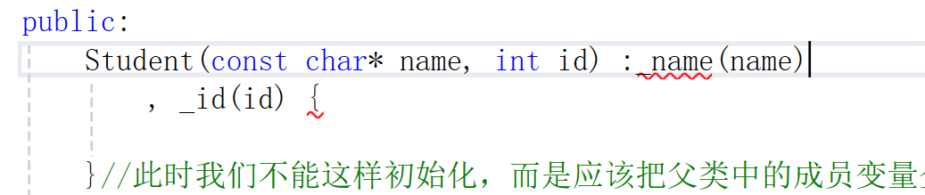 此时假如我们像之前那样初始化,此时就又错了,我们不能如许初始化,而是应该把基类的全部变量当作一个对象来初始化。