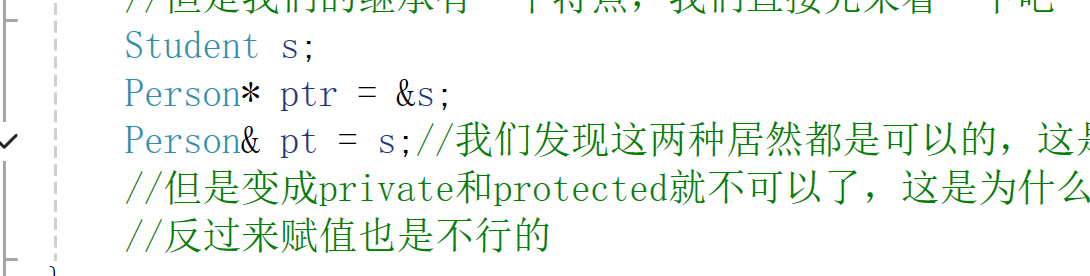 public继续的派⽣类对象 可以赋值给 基类的指针 / 基类的引⽤。这⾥有个形象的说法叫切⽚或者切