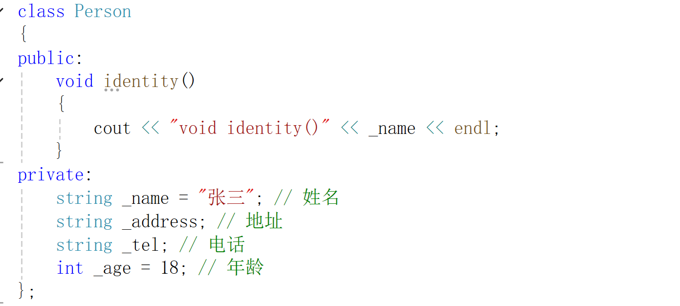 4. 使⽤关键字class时默认的继续⽅式是private,使⽤struct时默认的继续⽅式是public,不外最好显 ⽰的写出继续⽅式。