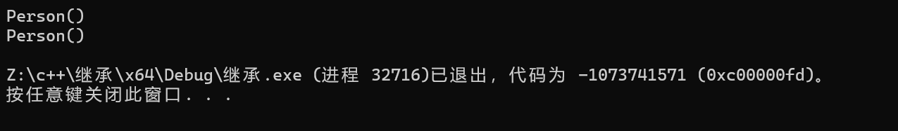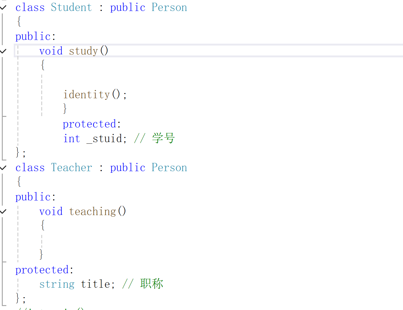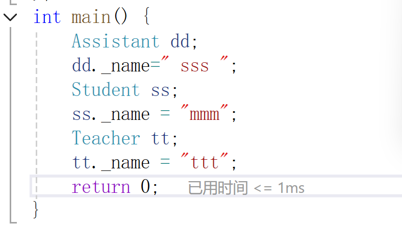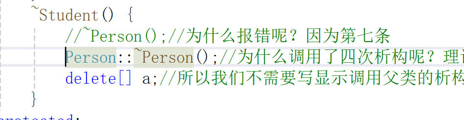 我们的person构造只在Person类中调用一次,我们调用Student和Teacher的构造的时间,就不会再调用我们Person的构造函数了。