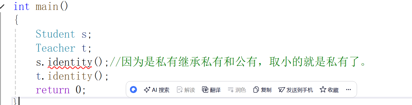 这句话的意思就是我改为私有的,此时除了在自己类中可以访问的到,在其他类中都是访问不到的,派生类中也是访问不到的。