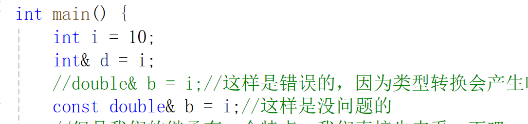 我们看一下这个代码,前两行的int引用引用int变量是没有题目标,我们发现double引用引用int范例是不可的,这是由于范例转换会产生暂时变量,引用无法指向暂时变量,必须加const延长暂时对象的声明周期。