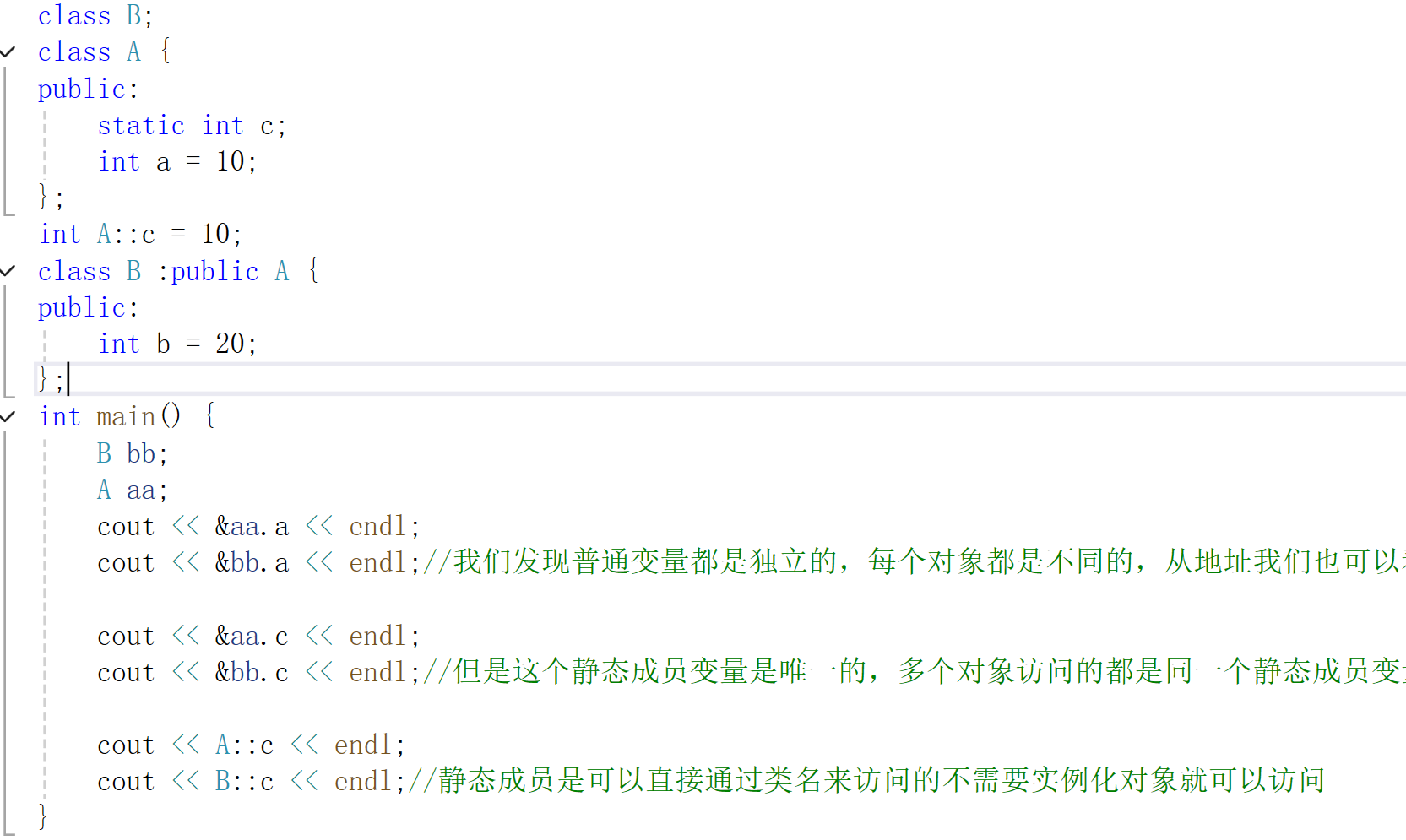 基类界说了static静态成员,则整个继续体系⾥⾯只有⼀个如许的成员。⽆论派⽣出多少个派⽣类,都只有⼀个static成员实例。 这个也是很好明白的就是全部实例化出来的对象访问的都是同一个静态成员。 我们可以通过这个来看一下。 我们发现平常变量都是独立的,每个对象都是差别的,从地点我们也可以看出来,但是这个静态成员变量是唯一的,多个对象访问的都是同一个静态成员变量,静态成员是可以直接通过类名来访问的不须要实例化对象就可以访问。 1.10 多继续及其菱形继续题目
