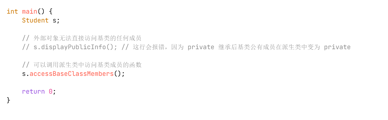 基类指针或者引用不可以直接指向派生类对象。private 继续意味着派生类把基类的接口酿成了自己的私有接口,外部无法将派生类对象当作基类对象来处置惩罚。