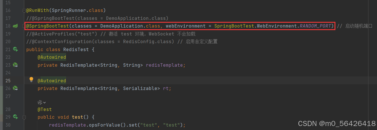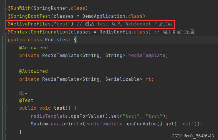 - @ContextConfiguration(classes = RedisConfig.class) // 启用自定义配置