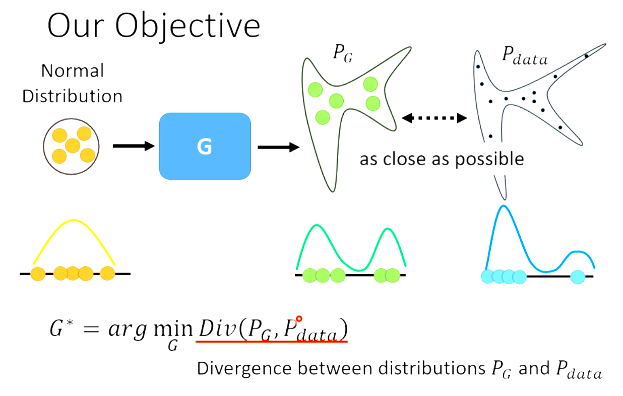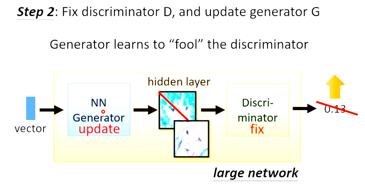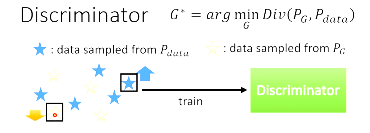 一大堆的real data个generate data同时去train,训练的目标是找到一个discriminator的参数,看到real data就给高分,看到generate data就给低分。