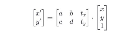 - 在上图所示的式子中,a,b,c,d代表线性变革的系数,而t参数代表平移部门的参数,输入点是齐次坐标情势