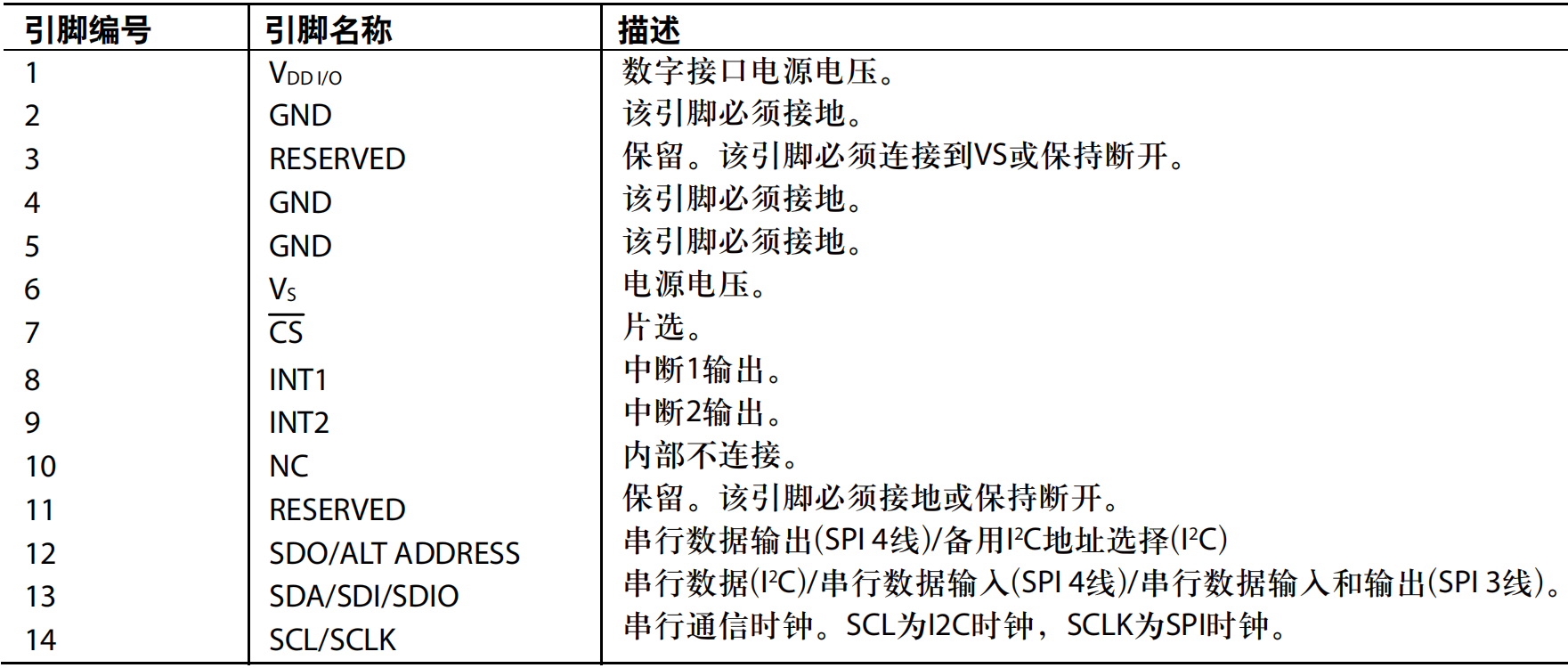 ADXL345芯片引脚界说