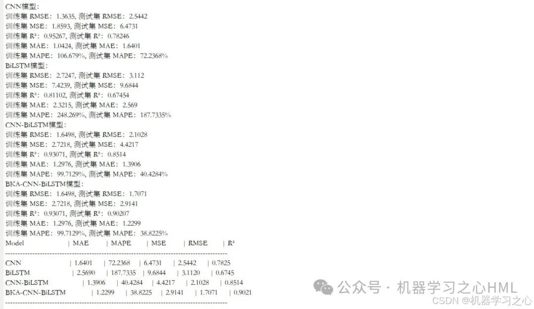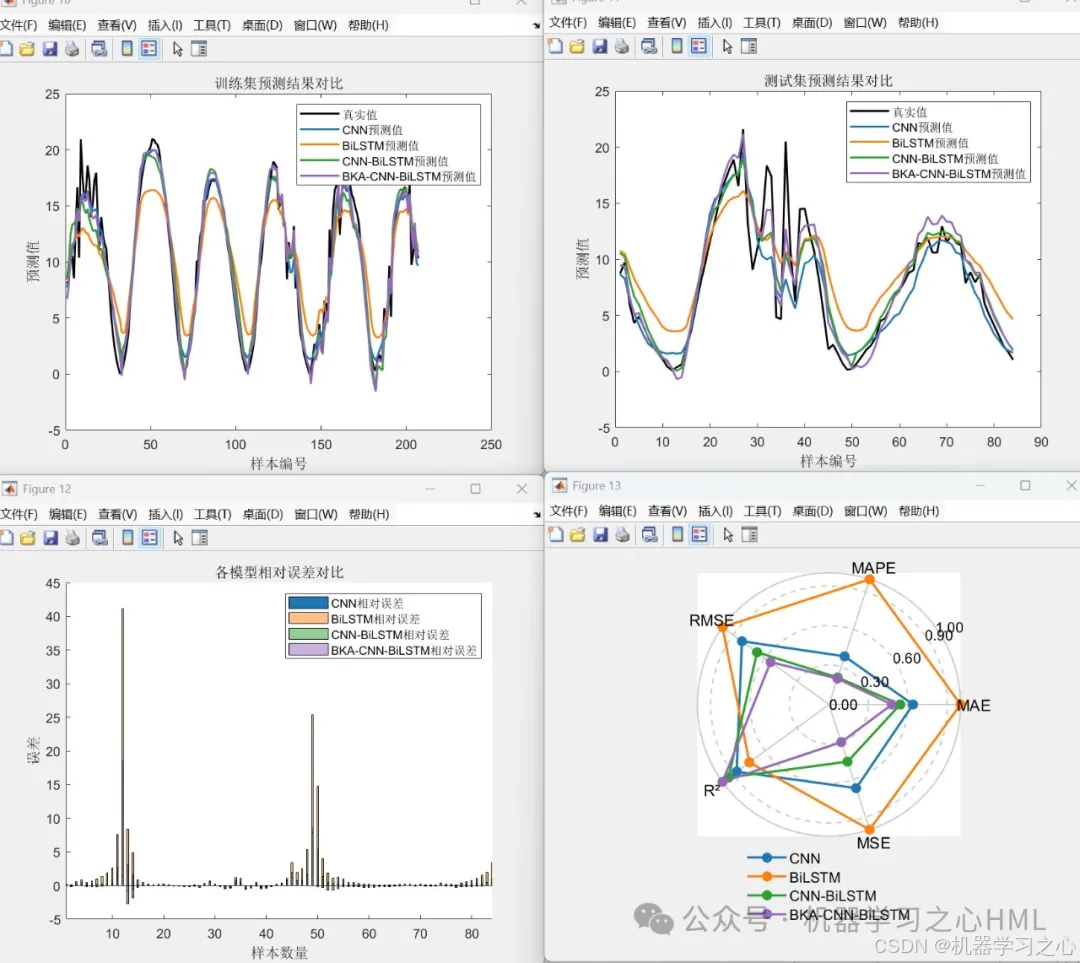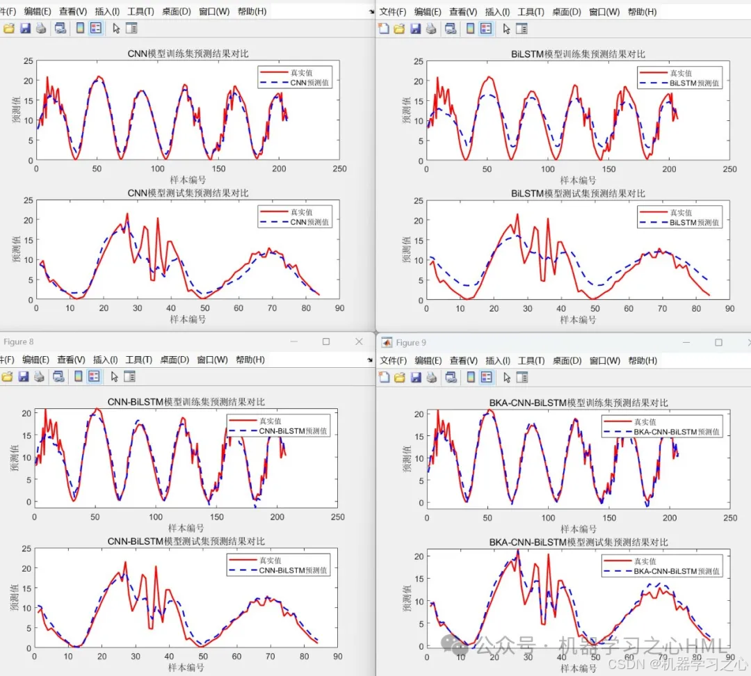 BKA-CNN-BiLSTM、CNN-BiLSTM、BiLSTM、CNN四模子多变量时序光伏功率推测,附模子陈诉