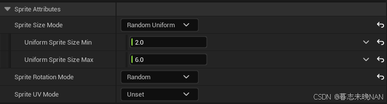 Random Uniform(随机同一巨细) → 使用随机数值控制巨细(Sprite Size 的 X 和 Y 值雷同)。