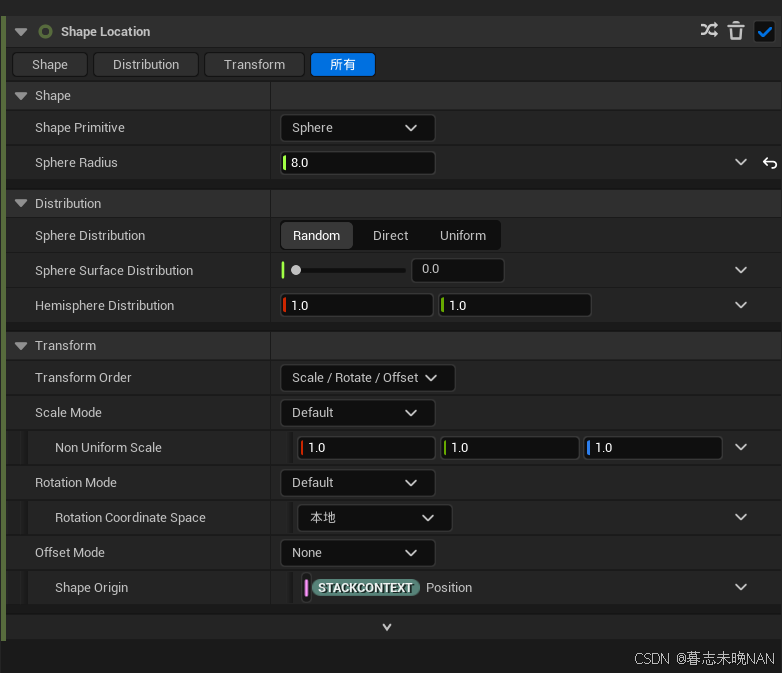 Random Non-Uniform(随机非同一巨细)X、Y、Z 轴可分别设置随机缩放比例。
