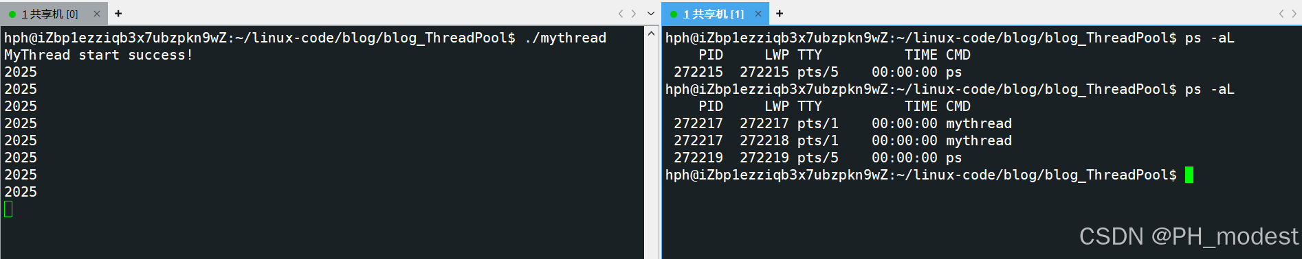 让我们使用ps -aL指令来检察一下是否真的创建了线程: